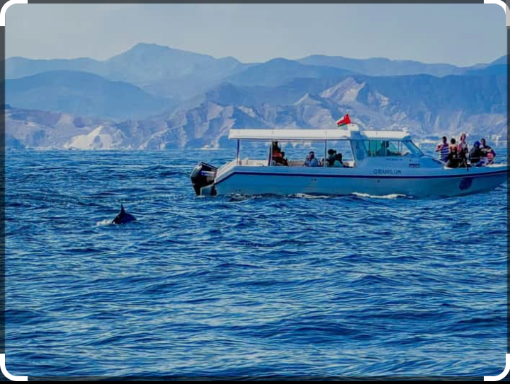 Off the coasts you will sail to discover the ballet of the dolphins in their natural habitat . This will also be a great opportunity to witness the marvel of Muscat geology blending with the sea of Oman.